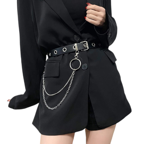 InicioDamasAccesorios DamaCorreaCorrea negra con hebilla y cadenas plateada