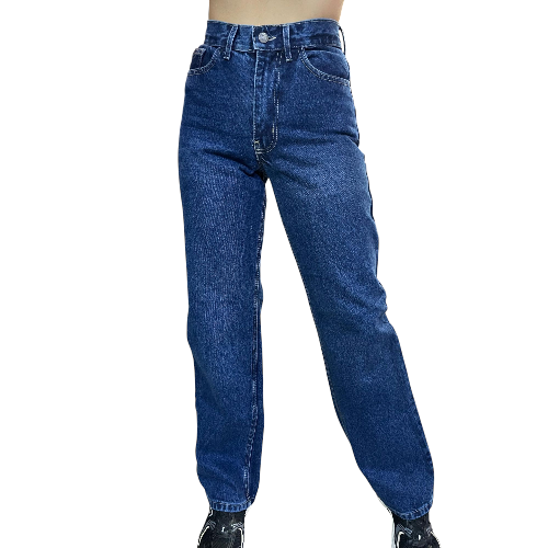 Pantalón Bota Ancha Azul Oscuro Liso Rigido
