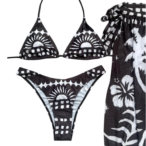 InicioTraje de bañoTrajes de baño 2 piezasEstampadoTraje de Baño Estampado negro con pareo